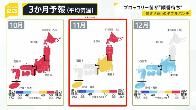 気象庁が発表した3か月予報によると、10月は全国的に気温が高く、遅い秋となりますが、11月には大きく季節が進む地域もある見込みです。