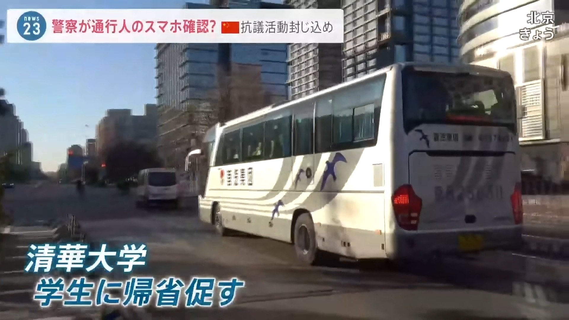 11月30日朝、北京市の名門・清華大学から出発したバス。学生を実家に帰すために用意されたものです。そのきっかけとみられるのが…
