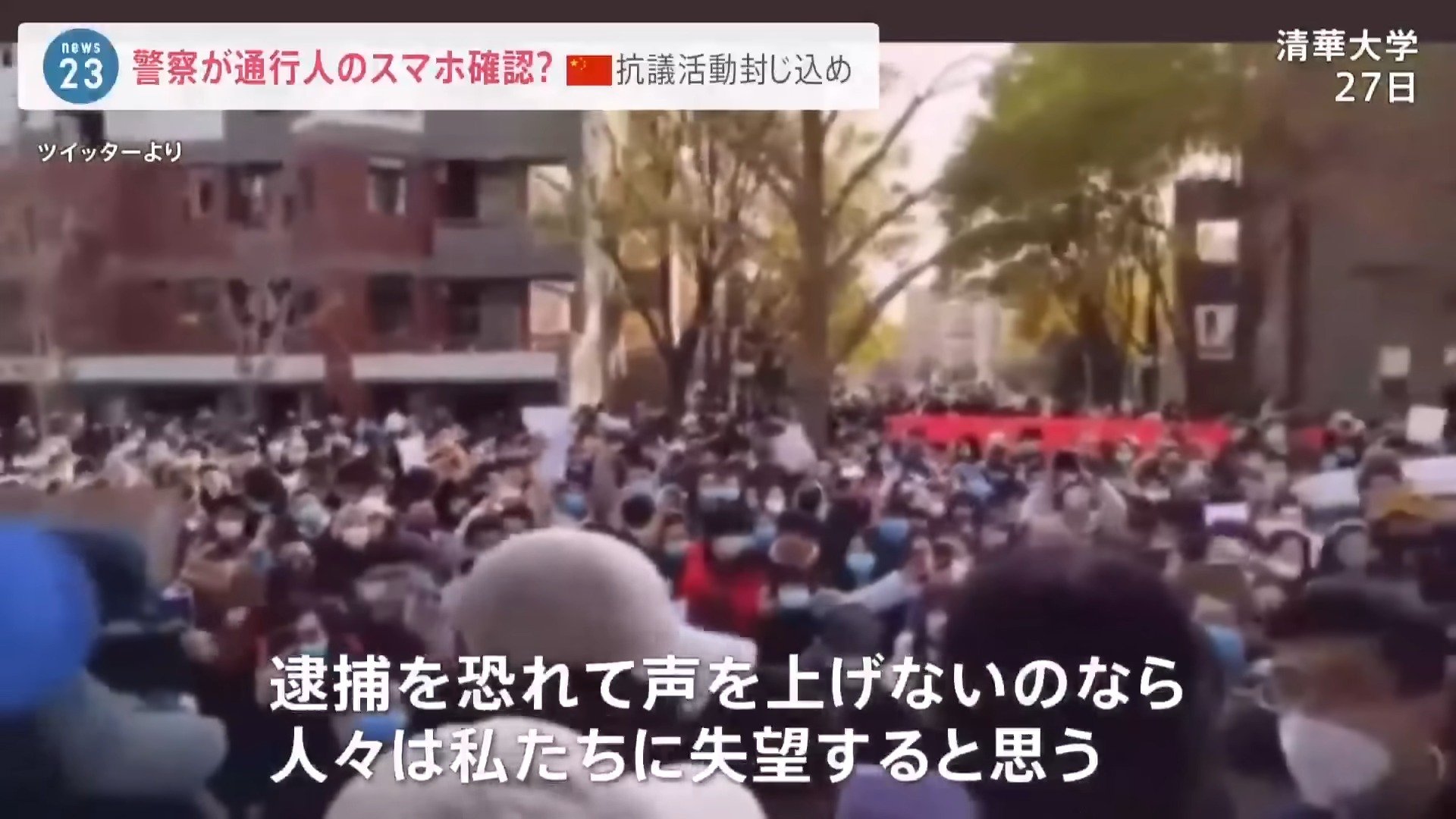 11月27日、大学内で起きた学生たちによる抗議活動。清華大学ではコロナ対策で大学寮で暮らす学生と外部との接触を断つ封鎖措置がとられていて、今回の動きは、学生たちの不満を解消すると共に、抗議デモの再発防止が狙いとみられます。