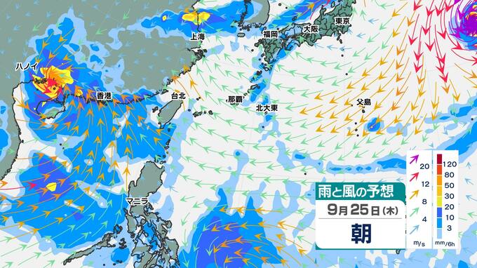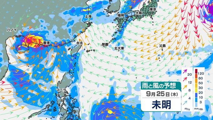 【またトリプル台風か?】24時間以内に次の台風発生へ「台風のたまご=熱帯低気圧」が発達 台風18号19号の次か 日本への影響は?【雨・風シミュレーション24日(水)~10月3日(金)/全国各都市の週間予報】気象庁の進路予想 台風情報2025 南日本放送 2025年9月23日(火) 15:00 国内 天気 雨と風のシミュレーション24日(水)~10月3日(金) このシミュレーション画像は予想のひとつで、大きく変わる可能性があります。進路は未確定です。今後、気象庁から発表される情報に注意してください。