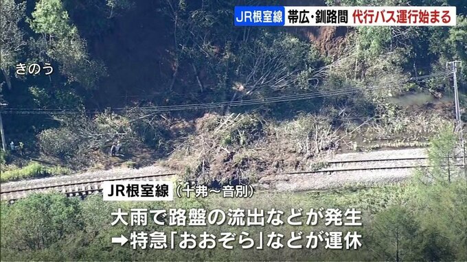 根室線の十弗と音別の間は、20日からの記録的な大雨で路盤の流出などが発生し、札幌と釧路を結ぶ特急「おおぞら」などの運休が続いています。