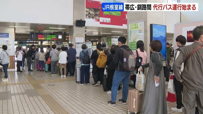 23日から帯広・釧路間に代行バスが1日2往復運行され、午前10時台の便には、およそ100人が乗車しました。