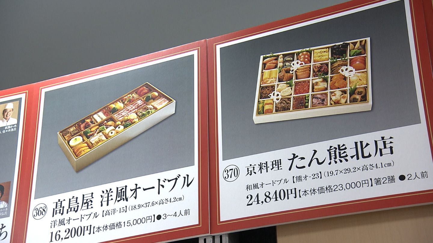 和と洋が融合した豪華な三段重に、中華風のものまで、バラエティ豊かなおせちが並びます。岡山高島屋の地下2階には、きょう(24日)から特設コーナーが設けられました。約900種類を店頭で取り扱っています。売れ筋は、2万5千円から3万円ほどの4~5人前のものだといいます。