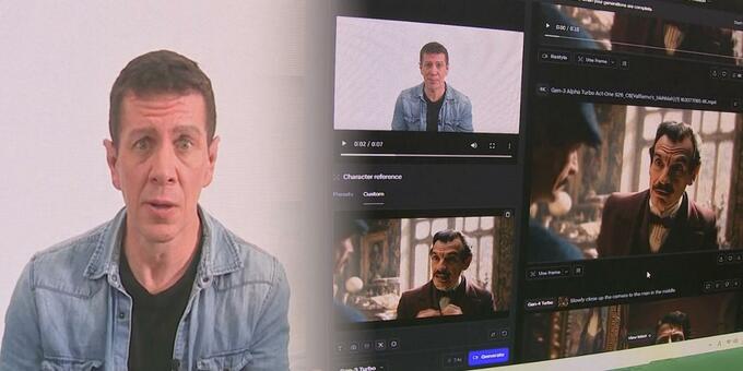 あらかじめ用意したキャラクターと先ほどの指示文を使って「Midjourney」で画像を作り、さらに別の生成AI「runway」で動きをつける。