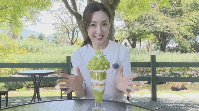 下から上までシャインマスカット 28センチの迫力満点パフェ 映える!緑と紫のクリームソーダも初登場 山梨・ハーブ庭園旅日記 To view this video please enable JavaScript, and consider upgrading to a web browser that supports HTML5 video テレビ山梨 2025年9月24日(水) 20:01 国内 今年も迫力満点のシャインマスカットのパフェが登場しました! 去年よりもさらに進化し、映える新商品も人気を集めています。 西垣友香キャスター: 「こちらがシャインマスカットパフェ!鮮やかな緑色が眩しい…横に広がる感じが花のようで美しいです」