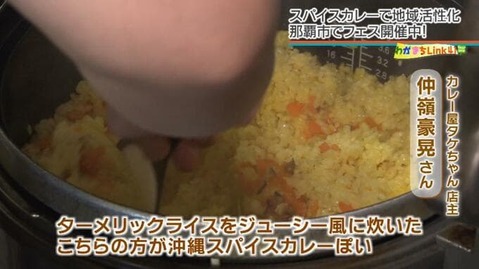 「ターメリックライスをジューシー風に炊いたものです。こっちの方が、沖縄スパイスカレーっぽいかなと」