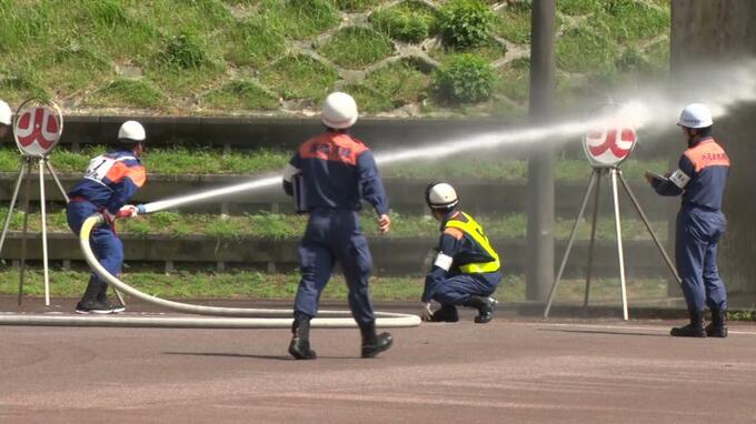 主催者によりますと、住民らで組織されている消防団は地域防災の中核的な役割を担っているため、技術の向上が欠かせないということで、出場者は緊張感を持ち真剣な面持ちで臨んでいました。