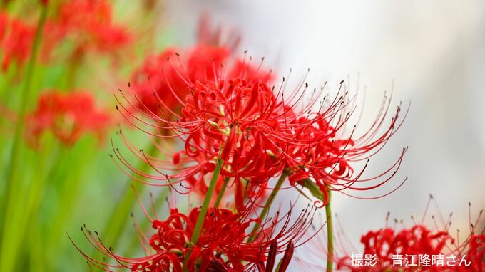 真っ赤なヒガンバナに黒いチョウ。青江隆晴さんが撮影した秋らしい1枚です。