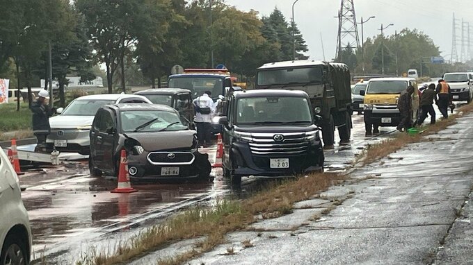 25日午前、北海道恵庭市の国道36号で車9台が絡む事故がありました。