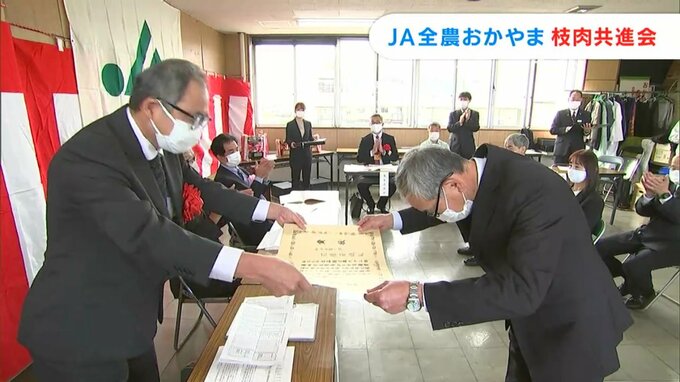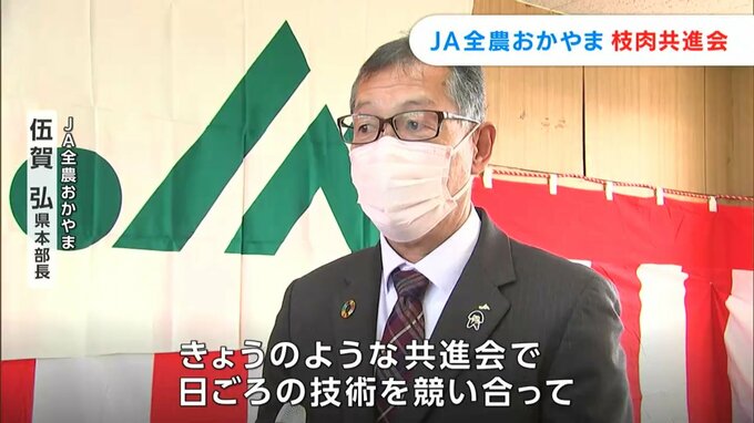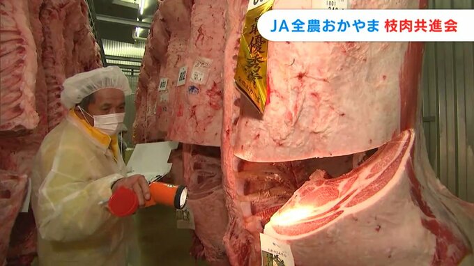 生産技術の向上などを図ろうと、岡山県産の牛肉や豚肉の品質を競う枝肉共進会が、岡山市中区で開かれました。