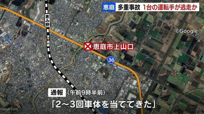 午前9時半前、恵庭市上山口の国道36号で、「2、3回車体を当ててきた」と110番通報がありました。