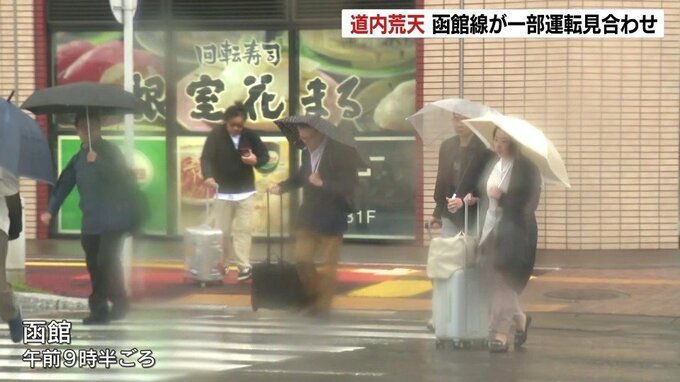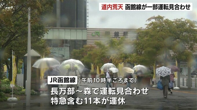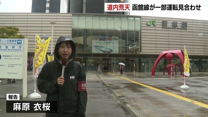 「午前10時です。雨の影響でJR函館線では、現在一部区間で運転を見合わせています」