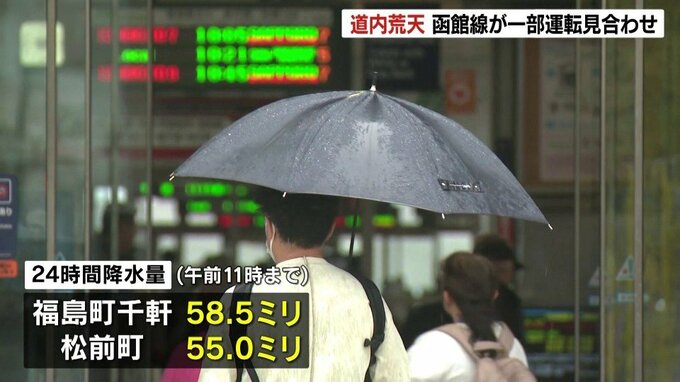 福島町千軒では、午前11時までの24時間で58.5ミリの雨が降りました。