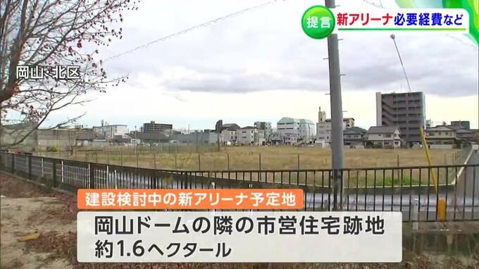 岡山市北区で建設が検討されている新しいアリーナについて、地元経済界などが[建設に必要とされる寄付金の目標額などの提言書」を、岡山市の大森市長に提出しました。提言書を提出したのは、岡山商工会議所や、地…