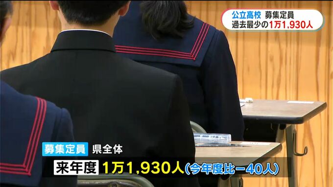 県教育委員会は25日、来年度に入学する公立高校の募集定員を発表しました。記録に残る中で過去、最も少ない人数です。公立高校の募集定員は少子化が進むほか、私立学校や通信制の学校など進路選択の多様化もあり減…