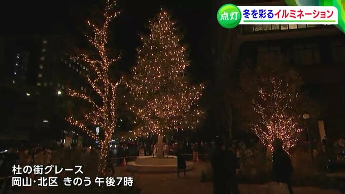 一方、岡山市中心部にある複合商業施設「杜の街グレース」でも冬のイルミネーションが始まりました。