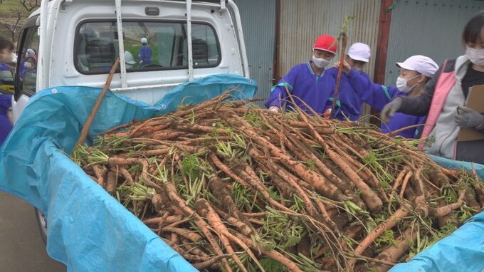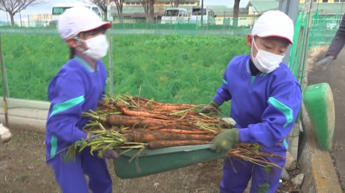 ニンジンは子どもたちがお世話になっている人たちに配ったり、ニンジン飯にして給食に出されたりするということです。