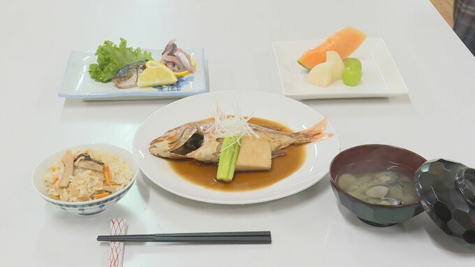 完成したメニューはアジの塩焼きとタイの煮つけそしてマツタケの炊き込みごはんなど秋を感じる5皿です。