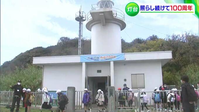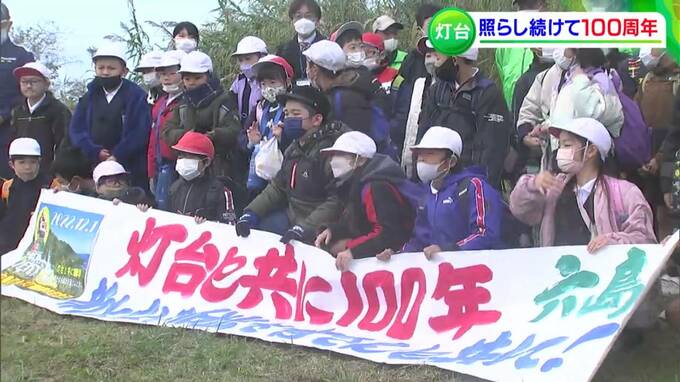 笠岡市沖の六島にある岡山県最古の灯台が、きょう(12月1日)100周年を迎え、市内の小学生が島に招待されました。