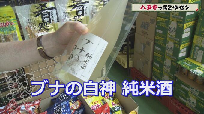 さて、ずらりと並ぶ地酒の中から川口さんが選んだのは、鰺ヶ沢町は尾崎酒造の『ブナの白神 純米酒』でした。川口さん、まだ飲んだことがなかったので購入を決めたのだそうです。