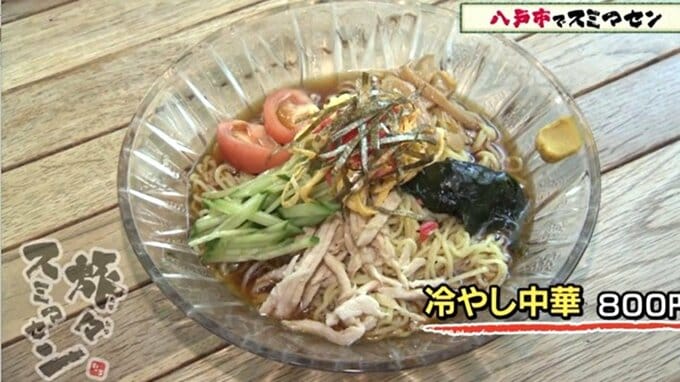 新井アナは、『冷やし中華』(800円)と『ガーリックパン』(250円)を注文。