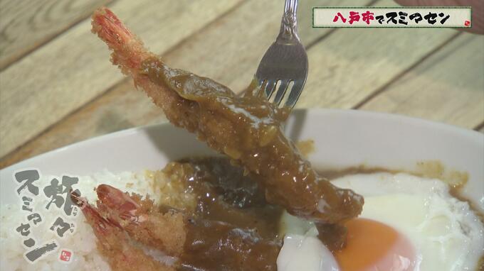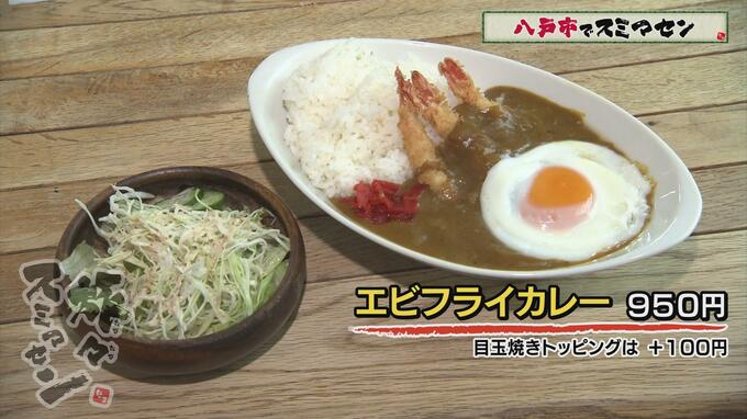 川口さんが注文したのは目玉焼きがのった『エビフライカレー』(950円)。プラス100円で目玉焼きのトッピングもつけました。