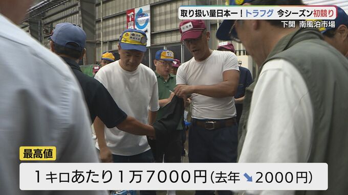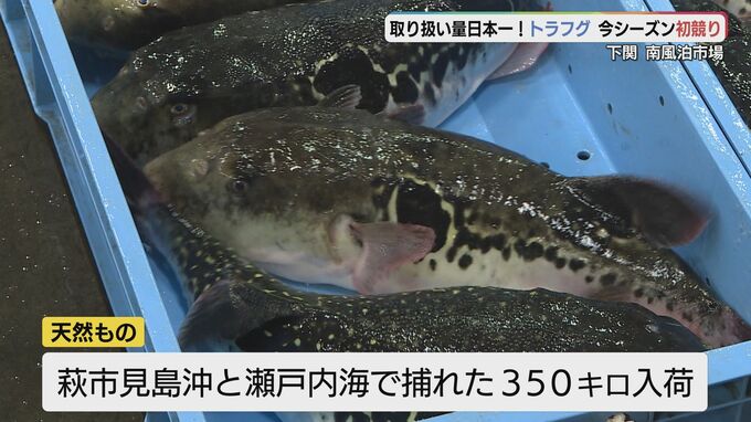 トラフグの取り扱い量日本一を誇る山口県下関市の南風泊市場で26日、今シーズンの初競りがありました。