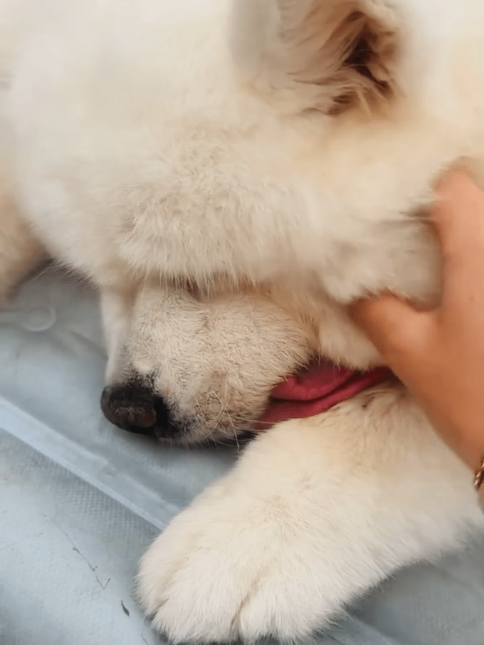 つるのさんは「#アグオ先生 12歳♀」「#サモエド」と紹介していて、この愛犬「アグオ先生」にフォロワーから「素敵なBGM」「わかります〜」「愛おしい」「安心してる証拠」「可愛くて起こせない」「おっさんやん」など、憎めなさや愛おしさに共感する声が多数集まっています。