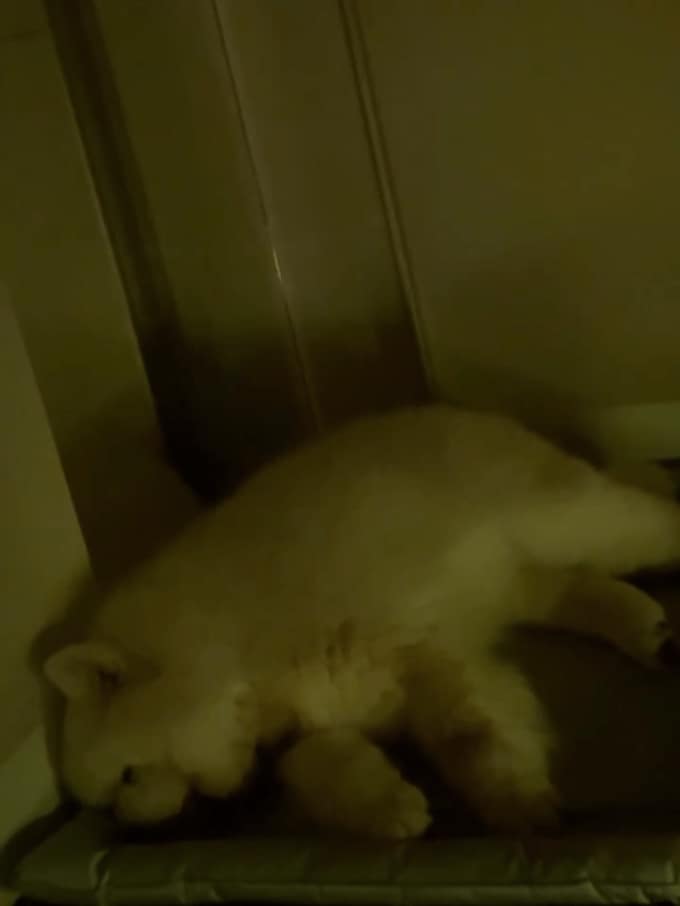 つるのさんは「寝不足の原因。」とテキストして、暗い室内の床の上の寝そべる愛犬の動画を投稿。その動画では、白く毛足の長い大きな体格の犬が、目を閉じて気持ちよさそうに眠っていて、部屋が揺れるほどの大いびきをかいています。