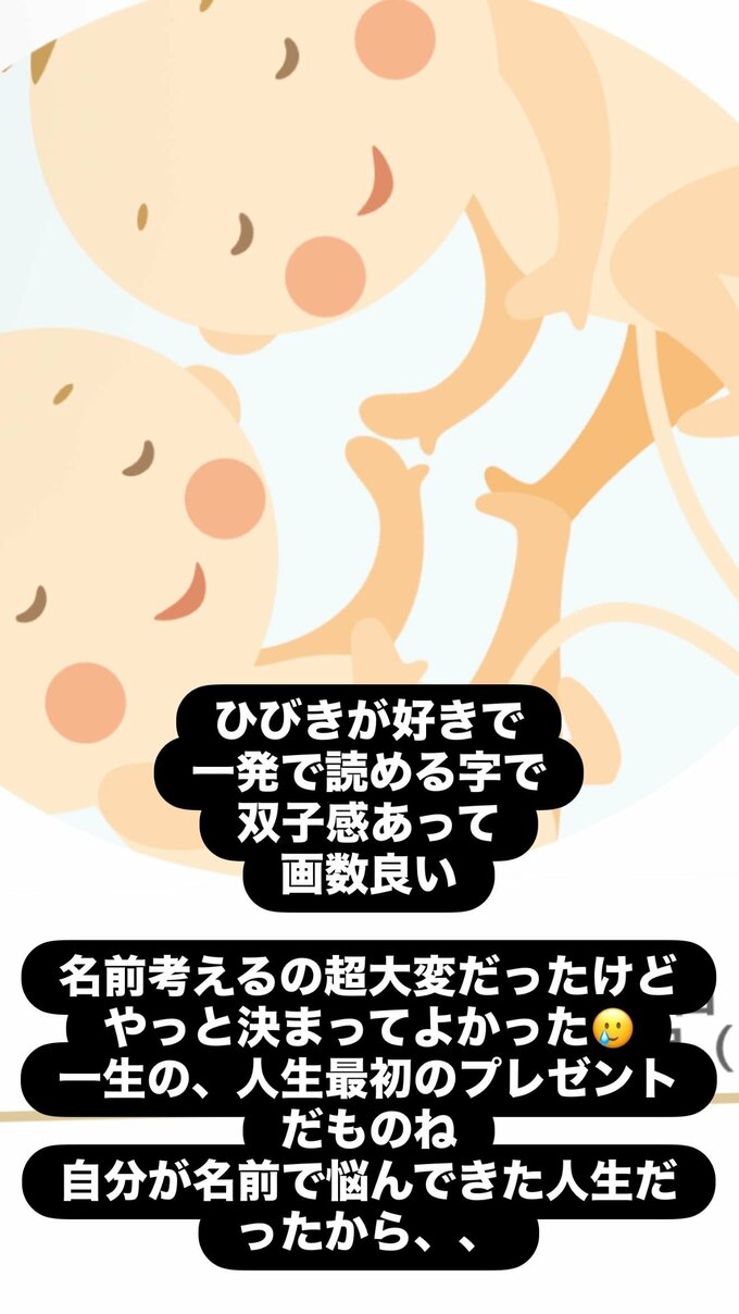 「名前考えるの超大変だったけど」「やっと決まって良かった」「一生の、人生最初のプレゼントだものね」と綴っていて、翔子さんが親として誠意と魂を込めて取り組んできたことがうかがえます。