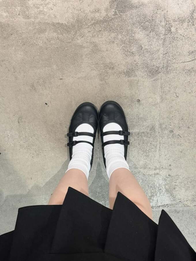 白いソックスに、人気の「MEXICO 66 TGRS」と思われる2本ストラップの靴を合わせ、クラシカルで上品な印象に。
