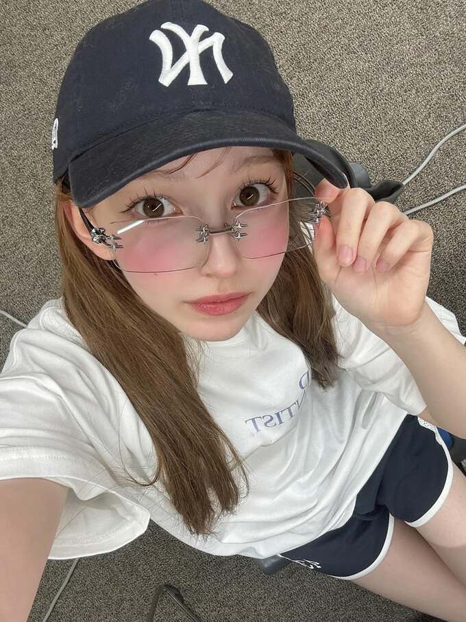 また別の画像では、キャップをかぶり、サングラスを持ち上げたポーズで、カメラに向かって遊び心ある表情を見せ、ボーイッシュに決めています。