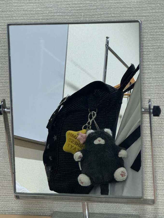 早瀬さんの黒いバッグには、ふわっとしたぬいぐるみなどを付けて、可愛らしさをプラス。小物使いにも、こだわりを感じさせます。