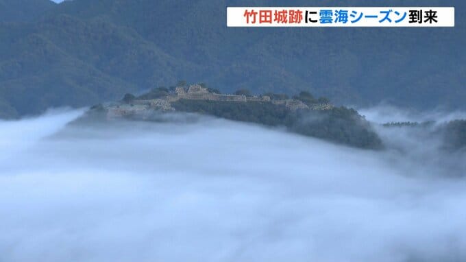 少しずつ季節は秋へと変わり始めていますが、兵庫県朝来市の竹田城跡では雲海のシーズンを迎え、大勢の観光客らが訪れています。 夜明けの光を受け、雲海に浮かび上がる石垣。天空の城として人気の朝来市の竹田城…