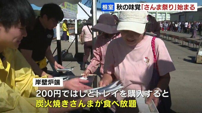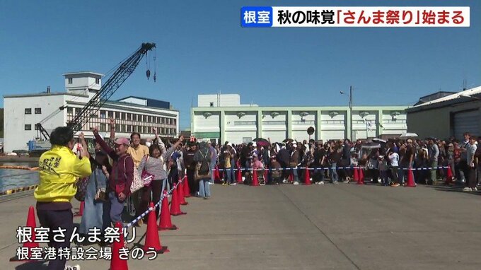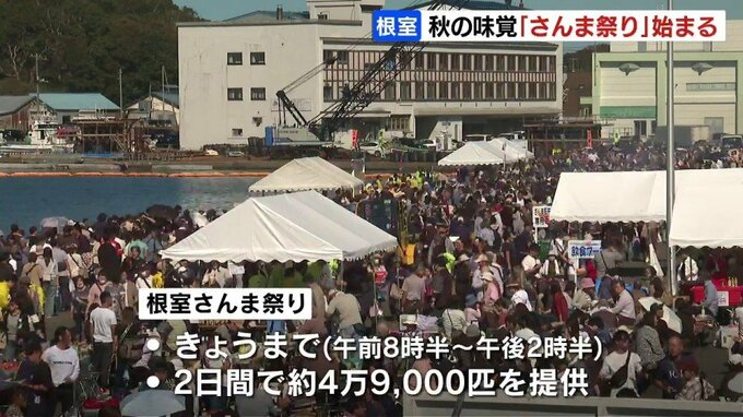 秋の味覚が堪能できる「根室さんま祭り」は28日も開かれ、今年は2日間で約4万9000匹のさんまが提供されます。