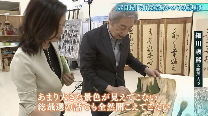 自らの作品について語る細川護煕さん。かつて非自民8党派による連立内閣を組閣した元総理です。政界引退から27年、今、行われている自民党総裁選について...