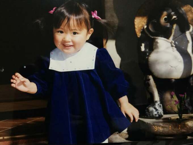 投稿には幼少期の写真が添えられていました。写真は、1994年1月1日に撮影されたとみられる白と濃紺のワンピース姿を着た幼少期の内田さんが写っています。髪はピンクのリボンで飾られたツインテール。満面の笑みを浮かべている様子が確認できます。