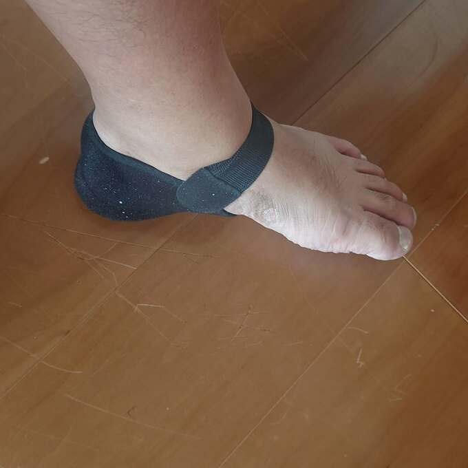 鈴木おさむさんは「テーピングのやり方教わったんですが。なんかうまくいかず。その中で、このカカトを守ってくれるサポーター買って 付けてるとまだまし。」と、投稿。