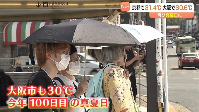 近畿地方でも少しずつ秋の気配を感じるようになってきていますが、28日、大阪や京都などでは再び気温が30℃を超える真夏日となりました。 照りつける日差しに多くの人が日傘をさしています。京都市では午後1…