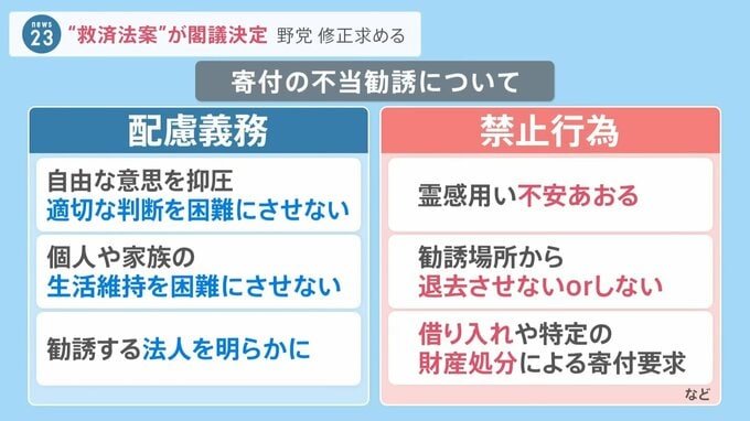 一方、政府は12月1日、旧統一教会をめぐる被害者救済の法案を閣議決定し、国会に提出しました。