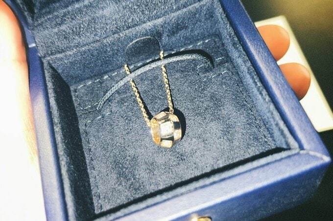 平野さんは赤い髪が特徴的な黒いシャツ姿で登場し、金色のネックレスとイヤリングを身につけた写真を投稿。さらに、ルイ・ヴィトンの特徴的なオレンジ色の箱や、青いベルベットのジュエリーボックスに収められた金色のチェーンネックレスの写真も公開しました。