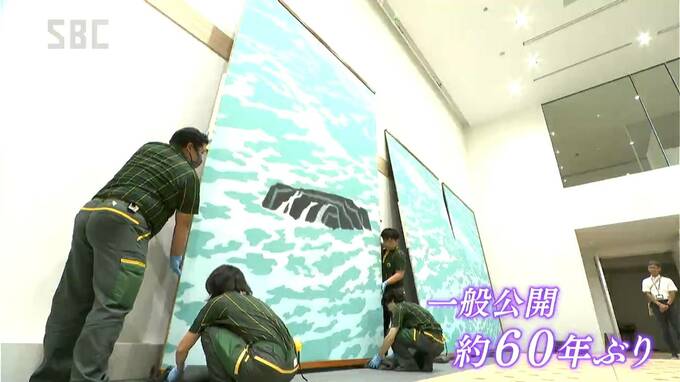 日本画家・東山魁夷が手がけた皇居宮殿にある壁画の原寸大「下図」を展示するための作業が長野市の県立美術館で行われました。入口ギリギリの大きさで運ばれてきたのは、日本画家・東山魁夷の作品「朝明けの潮(あ…