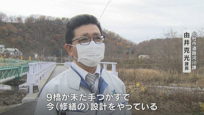 9橋が未だ手つかずで、今(修繕の)設計をやっている。予算的にも橋梁の修繕となると莫大なお金がかかる。補助金半分いただいてもなかなか順調にいかないのが現状。