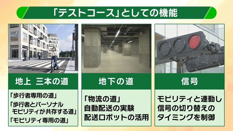 一方、物流専用の道として地下道が整備されていて、自動配送の実験や配送ロボットの活用が予定されています。雨や気温に左右されず、実験を続けられるメリットがあるということです。