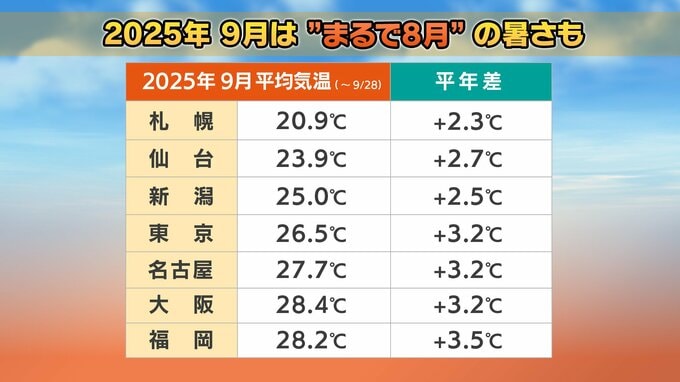 平年より高い9月の平均気温