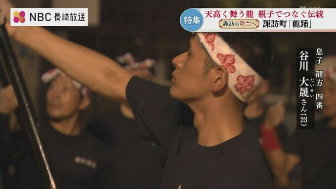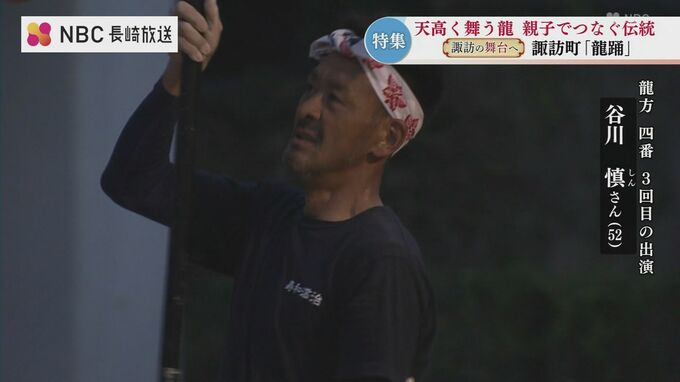 龍の4番目の棒を務める1人、谷川慎さん52歳。前回も4番棒で出演しました。そして今回、初めて龍方をつとめる23歳の息子・大晟さんも、同じ4番を担当します。