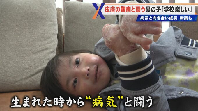 三重県津市に住む男の子。「表皮水疱症」という皮膚に水ぶくれが出来て、その水ぶくれがはがれてしまう難病と闘っています。いつも笑顔で頑張る姿に密着しました。