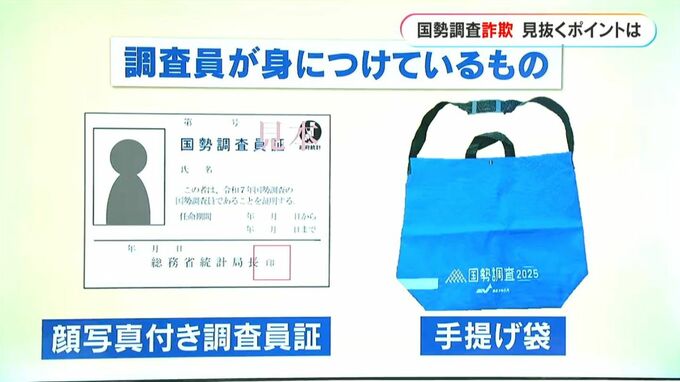 本物の調査員は、▼必ず、顔写真や名前、総務省統計局長の印が記載された「調査員証」を携帯しています。