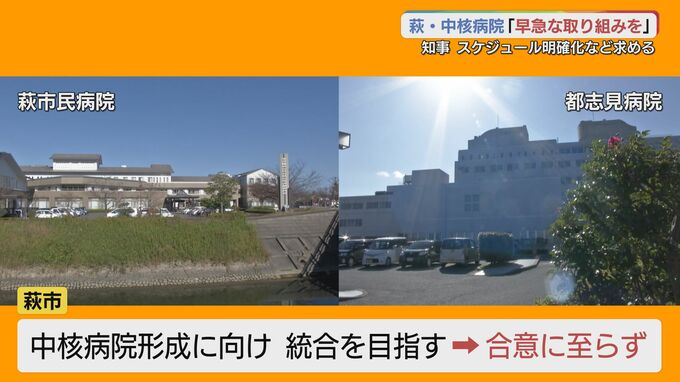 山口県萩市の市民病院と民間の病院を統合し、地域医療の拠点となる中核病院の形成を目指す動きについてです。進展がないことから、村岡知事は萩市に対し、早急に取り組みを進めるよう求める発言をしました。