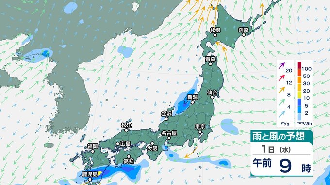 北陸地方で激しい雨 新潟は多いところで1時間に30mmの予想 ”警報級”大雨の可能性も 土砂災害や浸水に警戒を【雨風シミュレーション】 チューリップテレビ 2025年9月29日(月) 18:13 国内 天気 1日(水)雨と風のシミュレーション